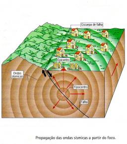 - As movimentações da crusta originam ondas sísmicas (movimentos vibratórios que se propagam a partir do foco do sismo).